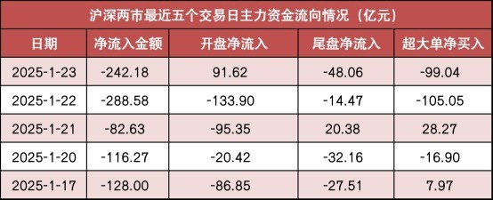 今日沪深两市主力资金开盘净流入91.62亿元,尾盘净流出48.06亿元,全天净流出242.18亿元。