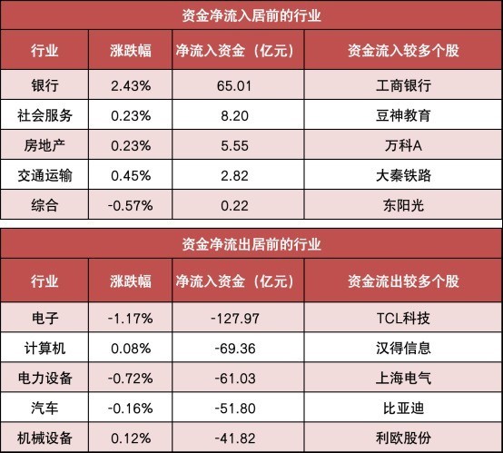 3.银行等行业实现净流入